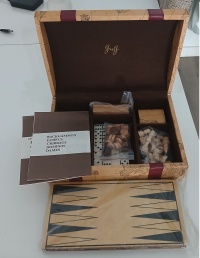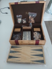 Magnífico cofre con juegos de mesa sin usar.- Backgammon- Dominó- Ajedrez- Damas- Cribbage